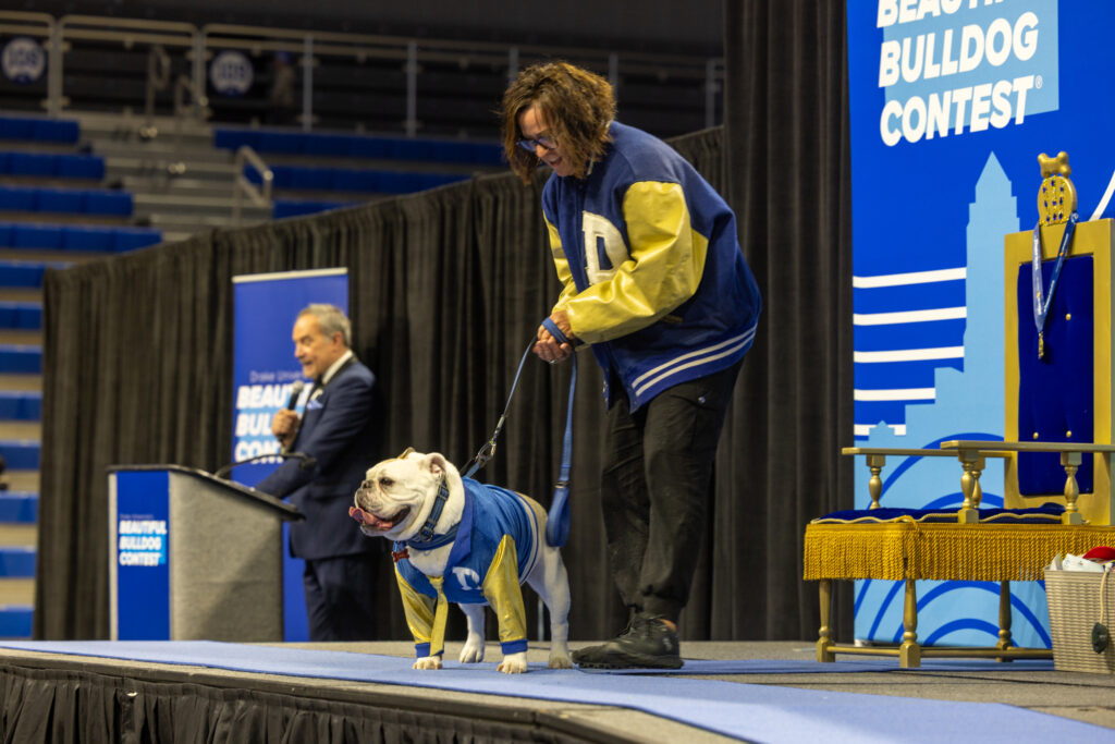 The 47th Annual Beautiful Bulldog Contest® carried special significance as it was the final contest overseen by Griff II, Drake University’s beloved live mascot, who will retire in May. While Flora reigns for one week over the Drake Relays, Griff II’s successor, Griff III, will take over full-time duties as the University’s live mascot next month.